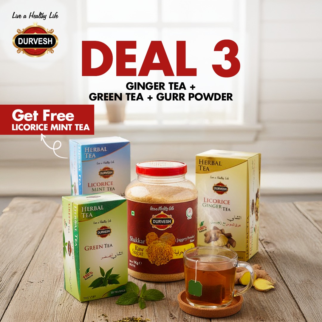 Home / Bundles / Sale / Buy Ginger Tea +Green Tea & Gurr Powder and get Free Licorice Mint Tea