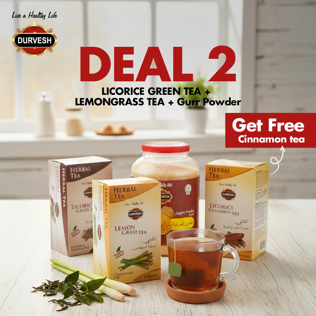 Buy Licorice Green Tea + Lemongrass Tea & Gurr Powder to get Free Cinamon Tea